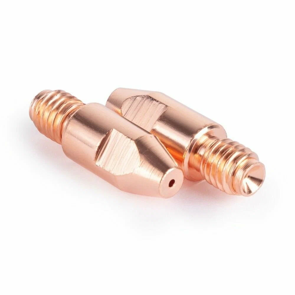 Этот наконечник подходит для сварки стальными, нержавеющими и порошковыми проволоками. Он крепится к держателю с помощью резьбы M8, что обеспечивает совместимость с большинством горелок.