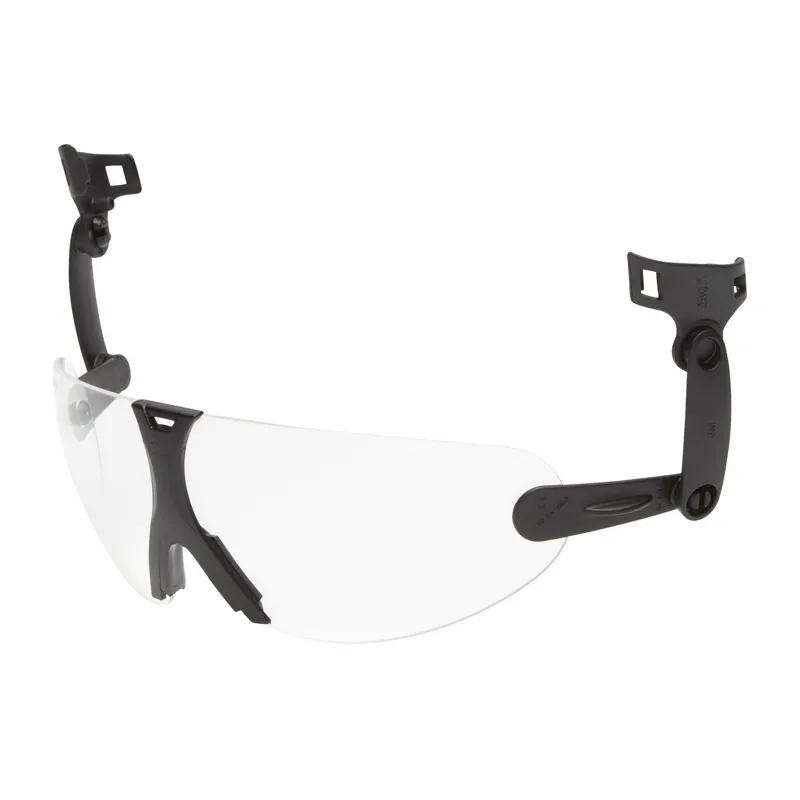 Очки защитные открытые 3М V9C, прозрачные, созданы для крепления на каску. При необходимости очки легко убираются в пространство между каской и оголовьем или опускаются для защиты глаз. Материал — прочный поликарбонат.