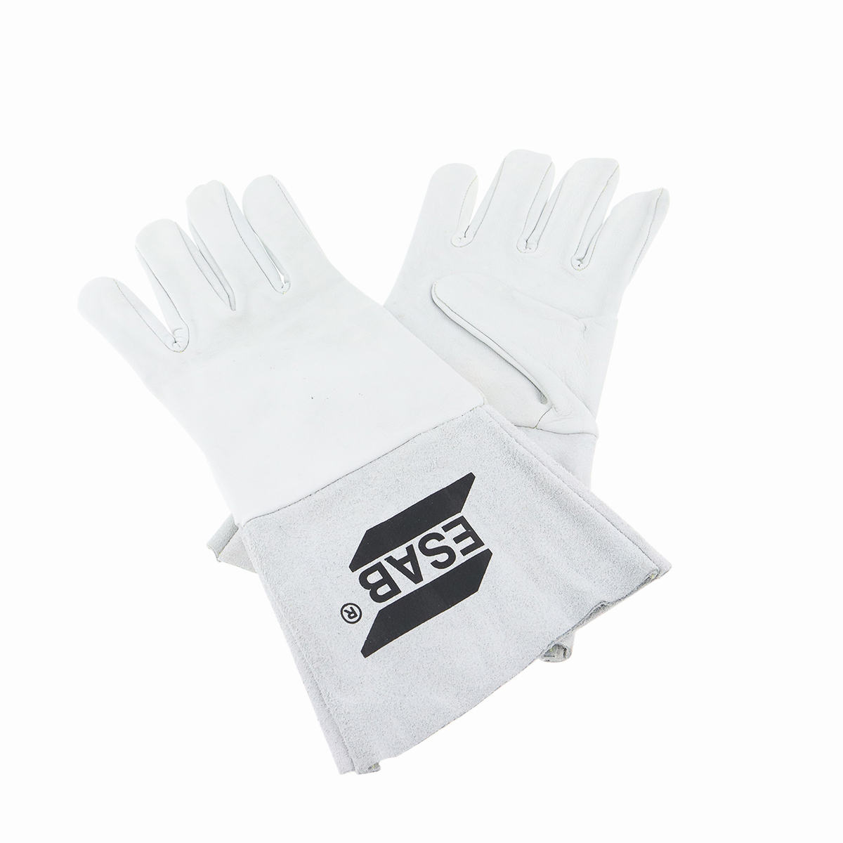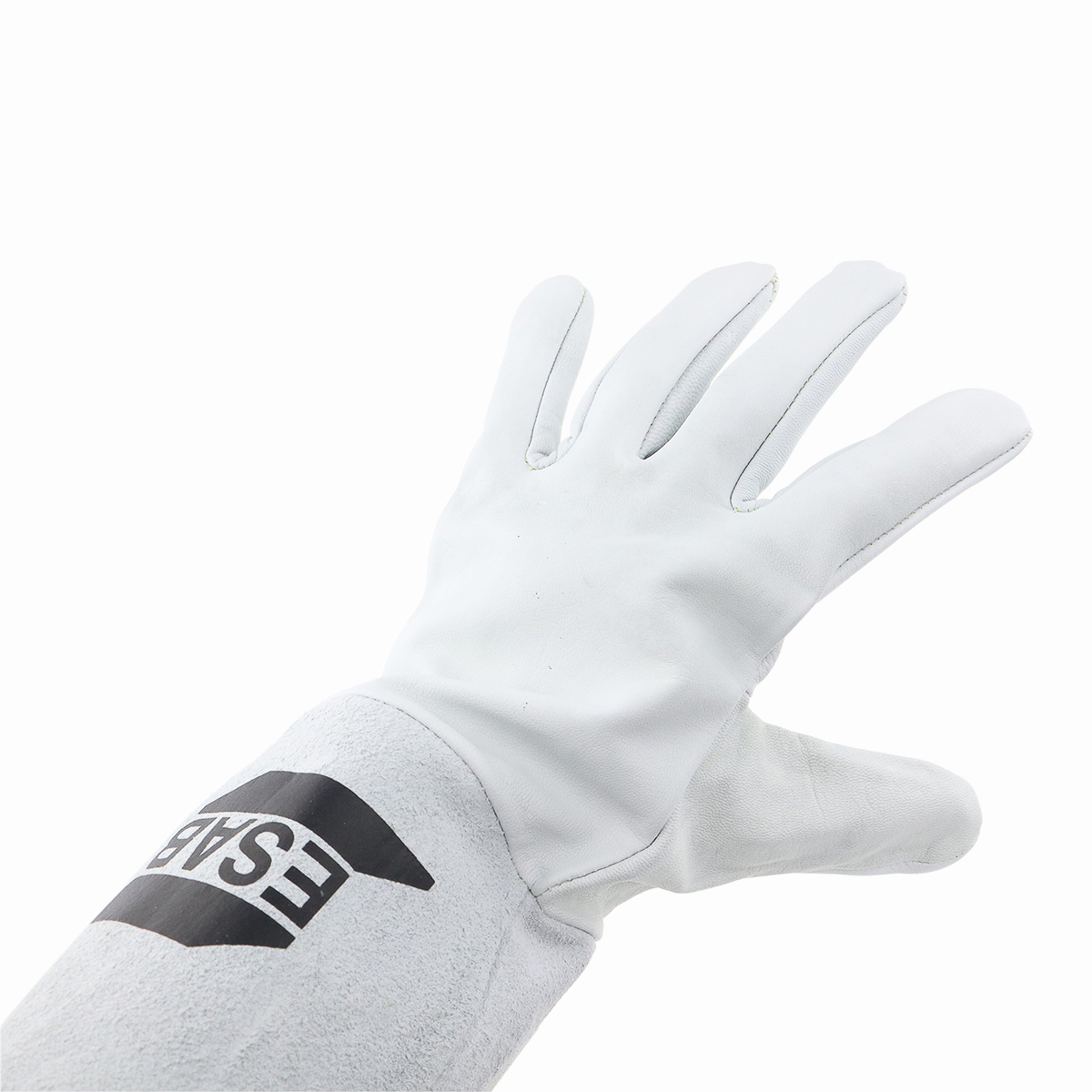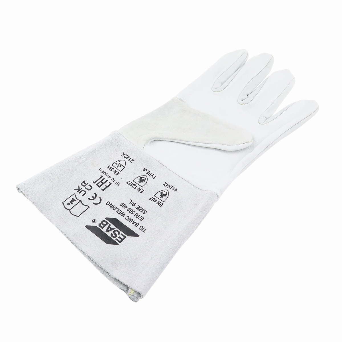 Традиционные кожаные перчатки ESAB TIG Basic белого цвета для аргонодуговой TIG сварки присадочными прутками и вольфрамовыми электродами в среде защитных газов. Обновлённые до EN12477 & EN388 категории 2. Манжета из коровьей кожи. Лёгкие, удобные и надёжные сварочные краги производства концерна ЭСАБ станут незаменимыми помощниками сварщика.