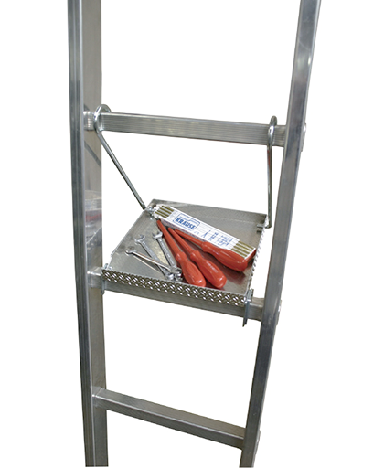 Она является дополнительной функциональной частью для лестниц и стремянок, а также позволяет сделать рабочий процесс максимально удобным и комфортным.