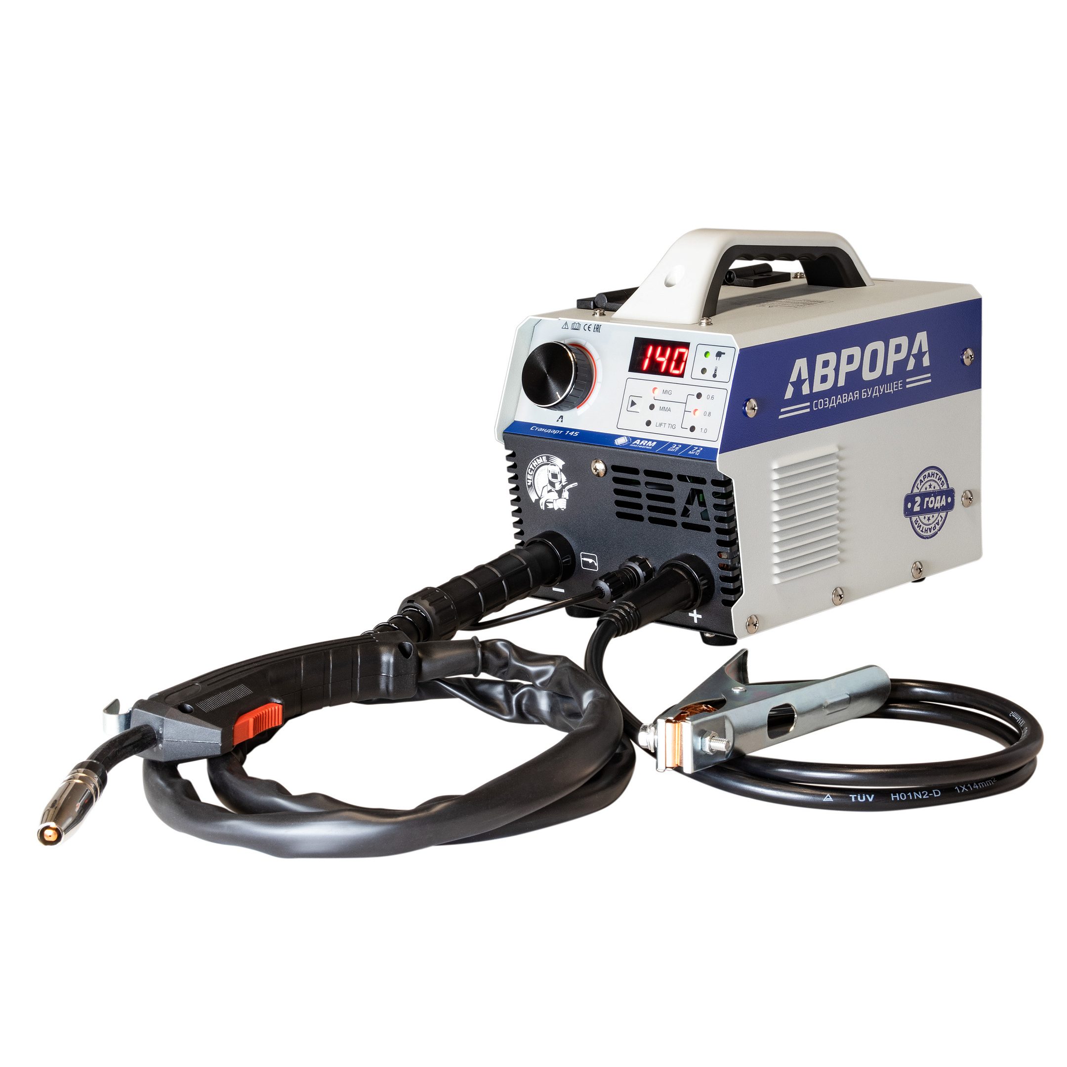 Главное отличие 145 модели от предшественника, АВРОРА Стандарт 140, новый вариант MIG горелки в комплекте. Аппарат поставляется с горелкой MK14. Горелка подключается к аппарату через силовой байонет.